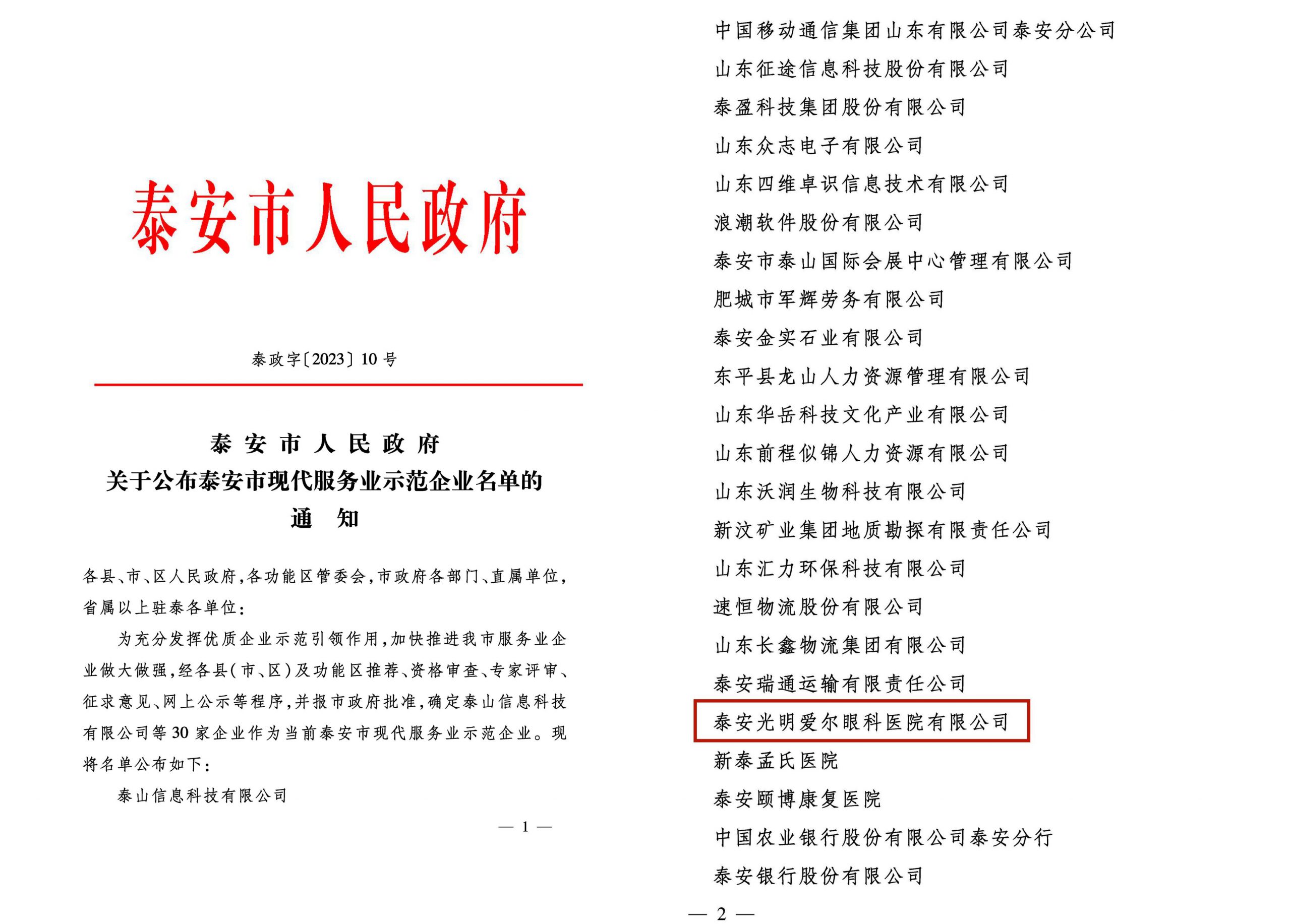 喜報(bào)!泰安光明愛爾眼科醫(yī)院獲評“泰安市現(xiàn)代服務(wù)業(yè)示范企業(yè)”